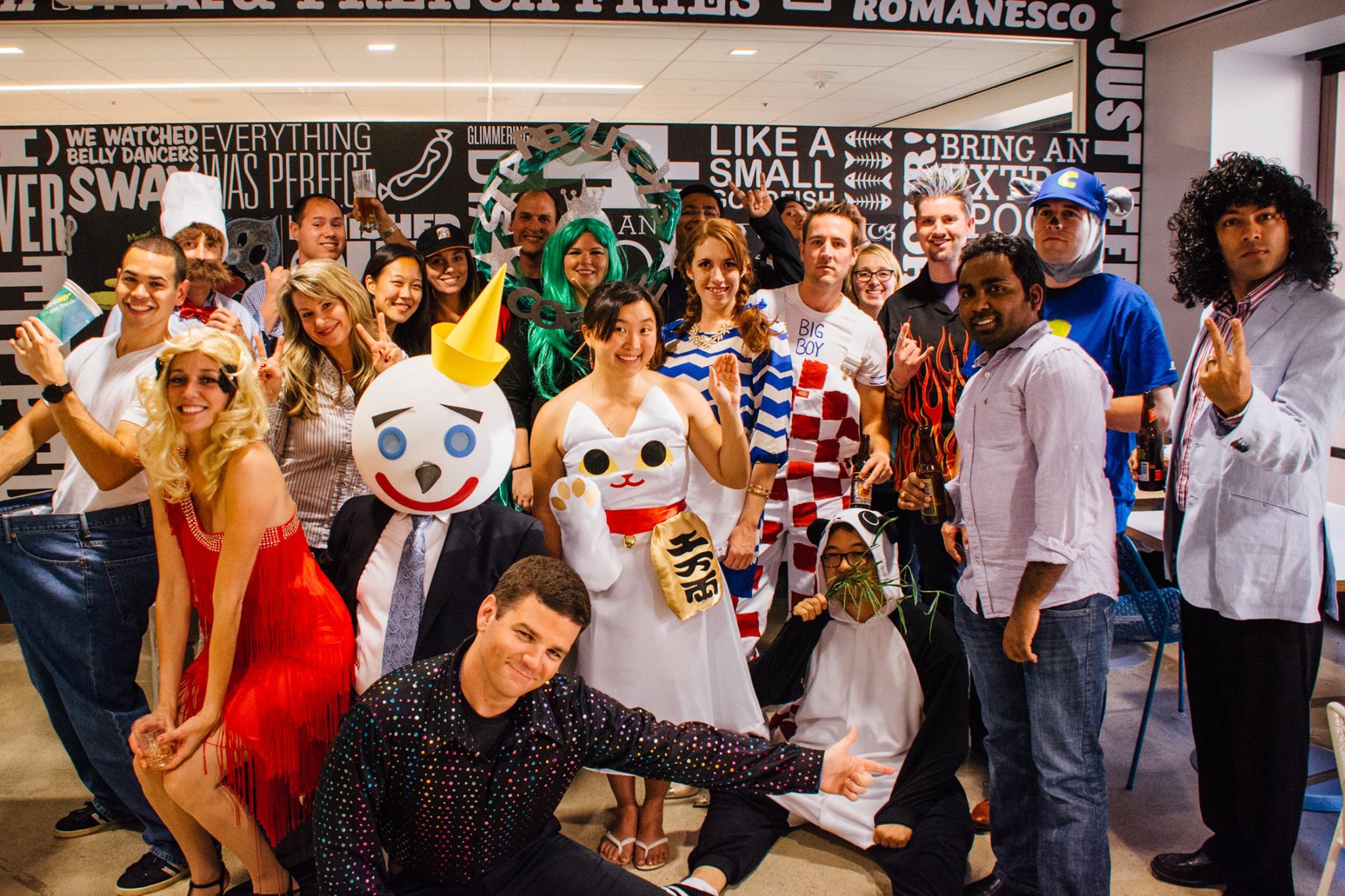 At top: OpenTable’s product team celebrates their victory in the company’s annual halloween costume competition.